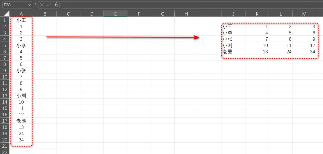 我希望把左侧的一列数据结构转换成右侧的数据结构。如果你对公式很熟练可能会想,这简单,用了一个复杂的公式来解决。那真的需要公式吗,相对引用就能解决。