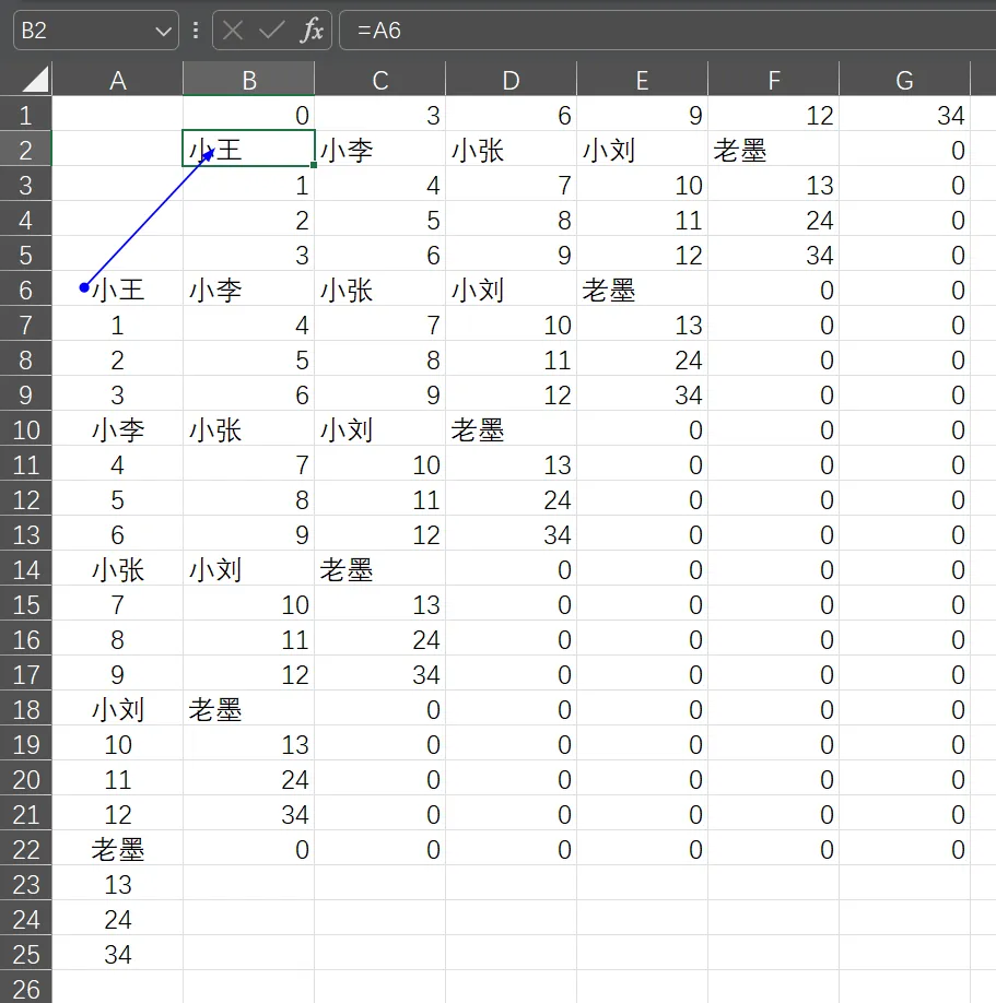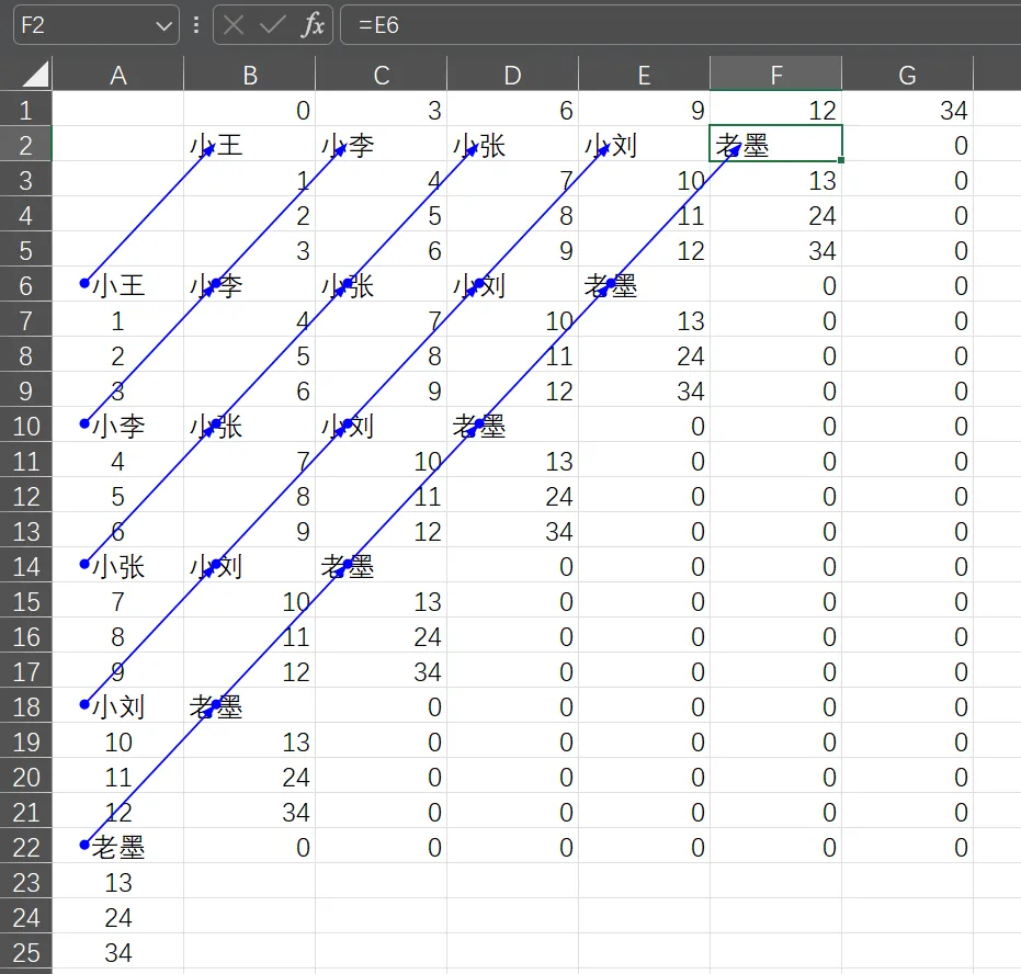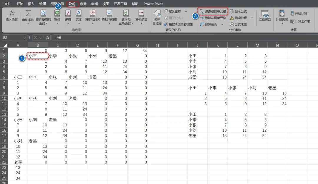 按照这个方式,打开其他单元格的追踪箭头,得到以下示意: