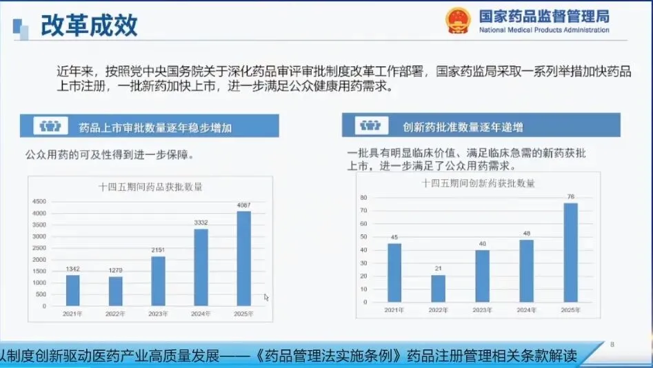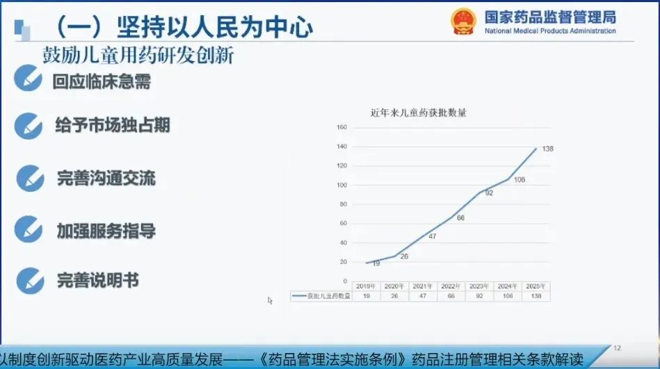 同时,我们紧扣人民群众急难愁盼问题,加大对儿童用药和罕见病用药的研发支持力度,2025年全年共批准儿童用药品138个、罕见病用药48个,其中9个儿童药品和6个罕见病用药为国内首次批准,进一步满足了临床需求。