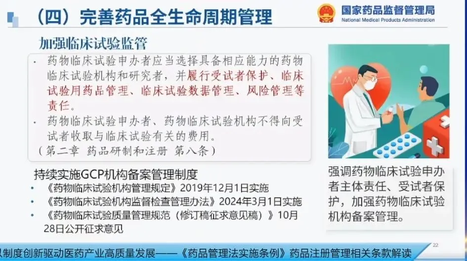 条例立足我国医药产业发展实际,积极借鉴国际先进经验,坚持以临床价值为导向,全方位鼓励、支持和保护研发创新。国家局按照“提前介入、一企一策、全程指导、严审联动”的原则,将药品审评资源更多向临床急需、重大创新品种倾斜,在临床试验、注册申报、检查检验、审评审批等全过程,加强与申报者的沟通交流,指导申报者提高研发效率和质量,全力支持创新药研发上市。