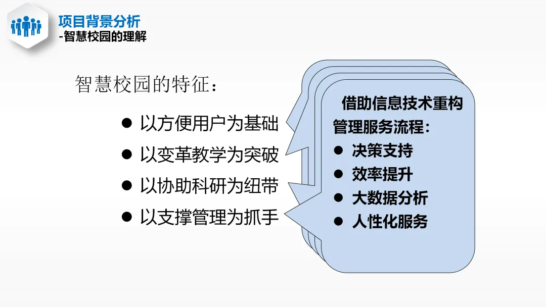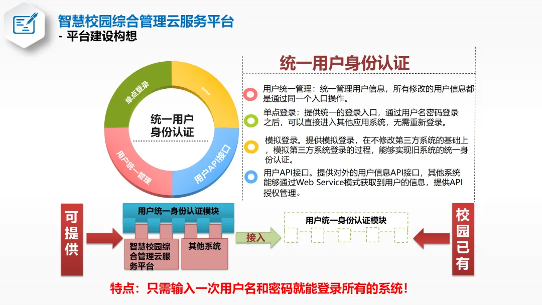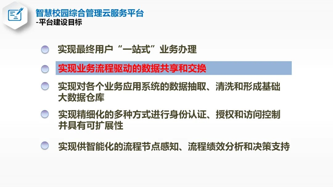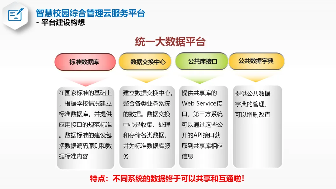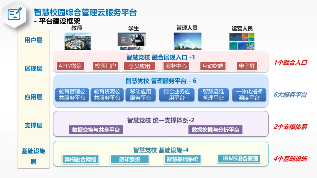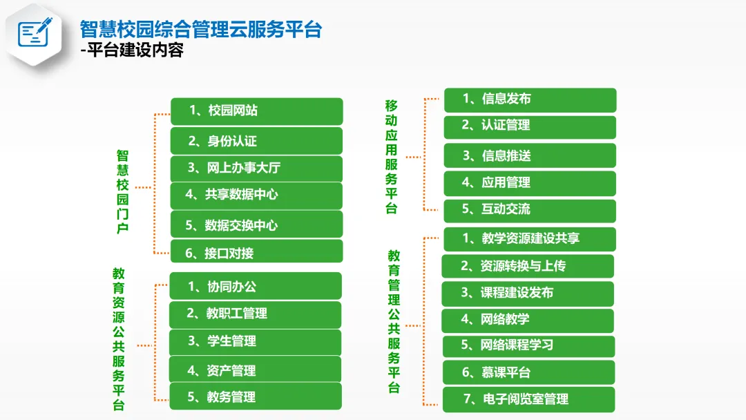 方案首先分析了智慧校园的背景与现状,明确了智慧校园建设的必要性与紧迫性。随后,提出了智慧校园的综合管理云服务平台架构,涵盖教育管理、教育资源、移动应用、综合业务、智慧运维及应急指挥等多个服务平台,实现校园业务的全面数字化与智能化。