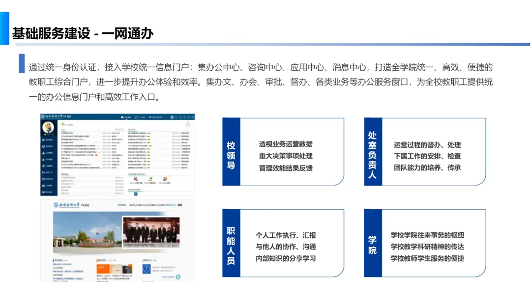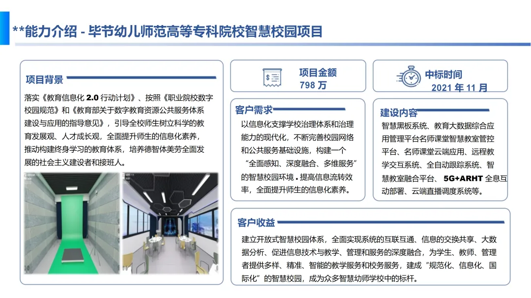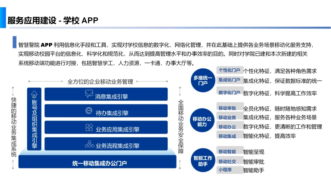 服务应用建设部分,方案提供了智慧学工、人力资源管理、办公系统及智慧警院APP等多元化应用,覆盖学生管理、教职工服务、办公流程优化及移动校园服务等多个场景。此外,方案还展示了重庆城市管理学院和毕节幼儿师范高等专科院校等成功案例,验证了方案的有效性和可行性。最终,本方案致力于打造一个全面感知、深度融合、多维服务的智慧校园环境,提升师生的信息化素养,推动职业院校的现代化转型与发展。