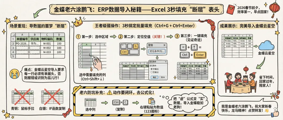 我是金蝶老六涂鹏飞,一个最懂业务的IT人,最懂IT的业务人。如果这个技巧帮到了你,动动手指点个赞,转发给还在加班导数据的同事!