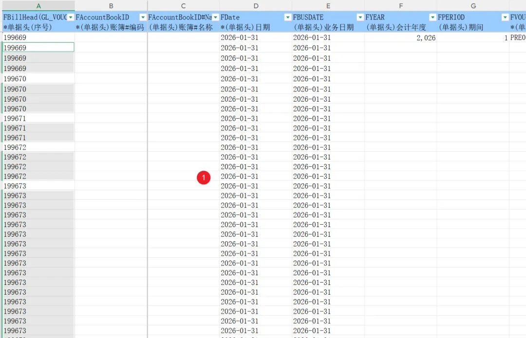 痛点来了:金蝶云星空的导入逻辑是——每一行都必须有单据编号。如果你直接把上面这张表导进去,系统会报错,或者把第2、3行识别成“没有单据头”的孤儿行。