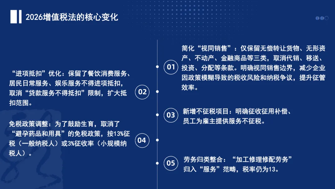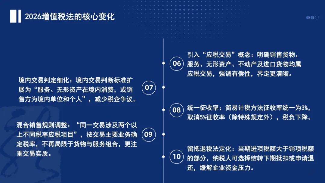 增值税法和实施条例已于2026年1月1日施行,为了帮助大家理解和使用新法律法规,本小编特制作ppt,共10个板块,45页ppt内容,以与大家共同学习。