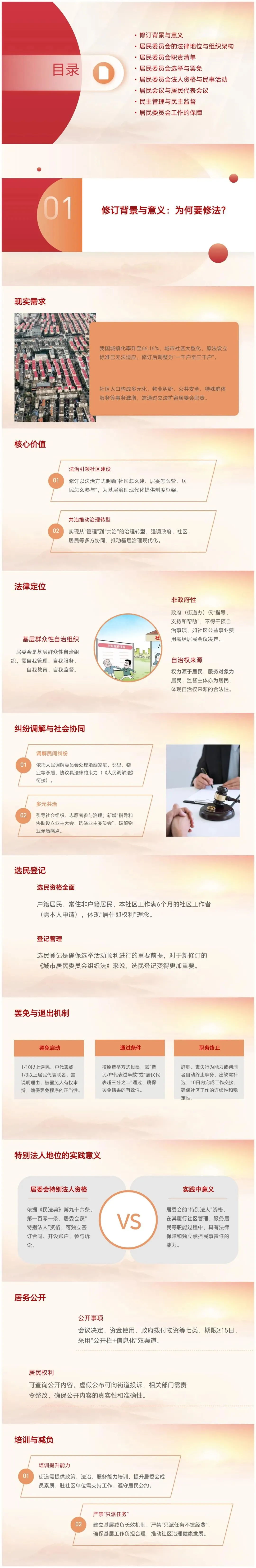 2.成员组成:第八条规定,居民委员会由主任、副主任和委员共五至九人组成,需满足两个硬性要求: