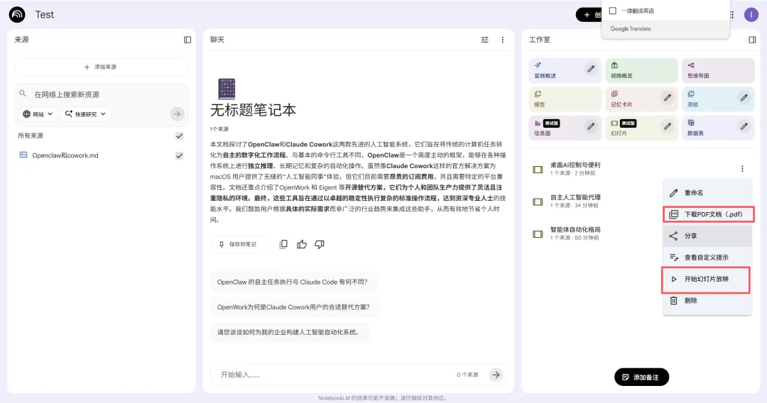 使用 NotebookLM 制作 PPT 需满足以下两个核心条件: