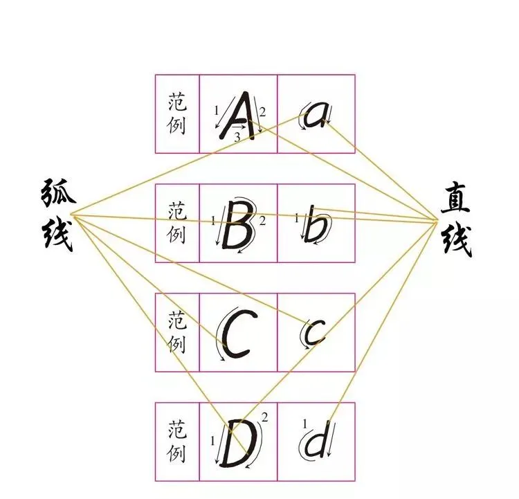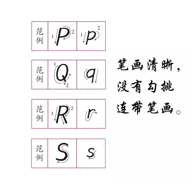 2.字母笔顺,字母和汉字一样有笔画的先后顺序,按顺序书写可规避笔画交错异常情况。