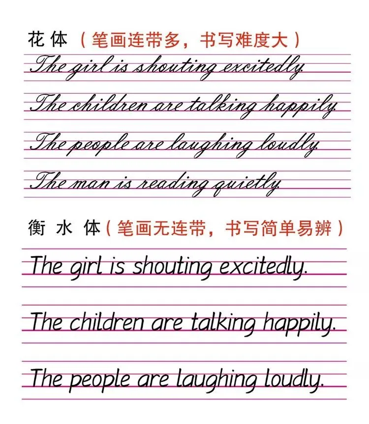 7. 字母连写,衡水体书写过程中,切勿出现连笔。