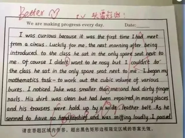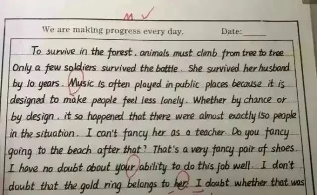 一个字母写不好都要更正,“一笔也不要多,一笔也不要少”,也难怪能教出这样的学生了!