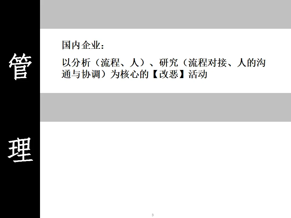 认为现场只是执行层,以分析(流程、人)、研究(流程对接、人的沟通与协调)为核心的