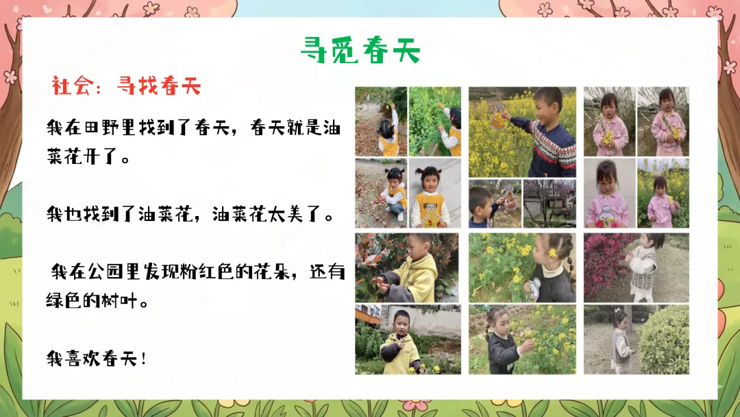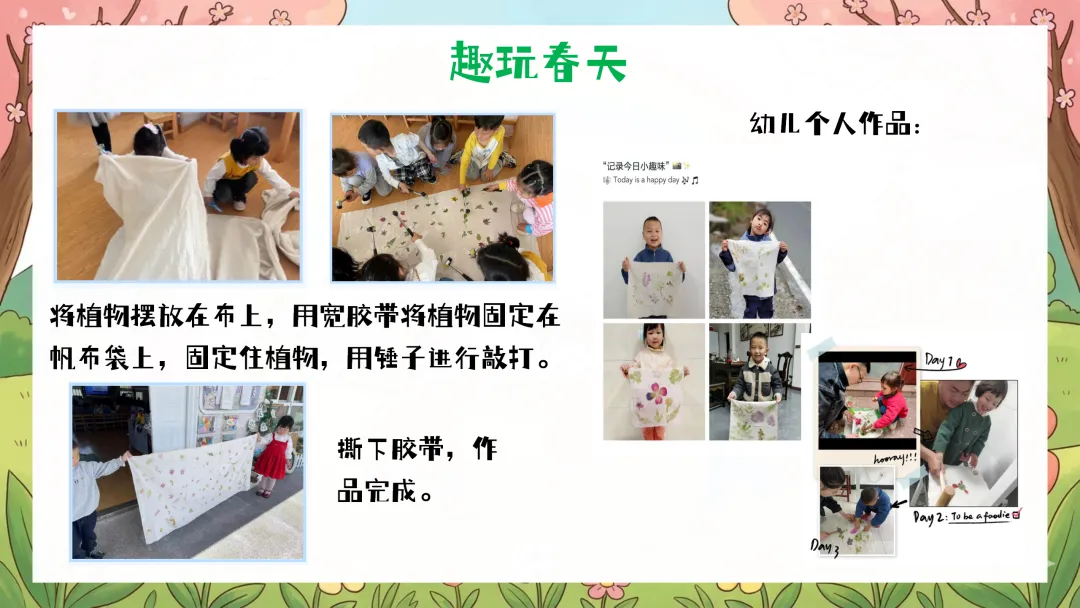 教师:“哇,小朋友们都完成了自己的种子贴画,真厉害!我们一起来看看吧。”