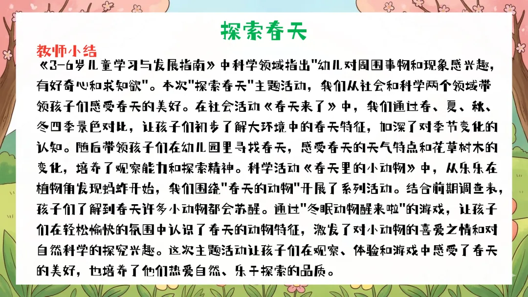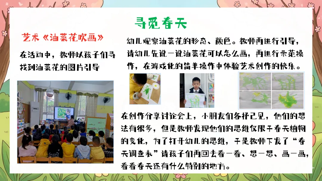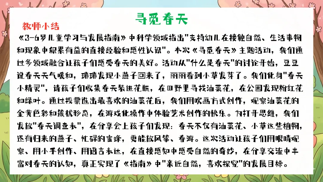 结束部分的作品分享环节,幼儿乐于介绍自己的作品,增强了自信心。活动延伸将美术活动与科学观察、家园合作相结合,拓展了活动的深度和广度。