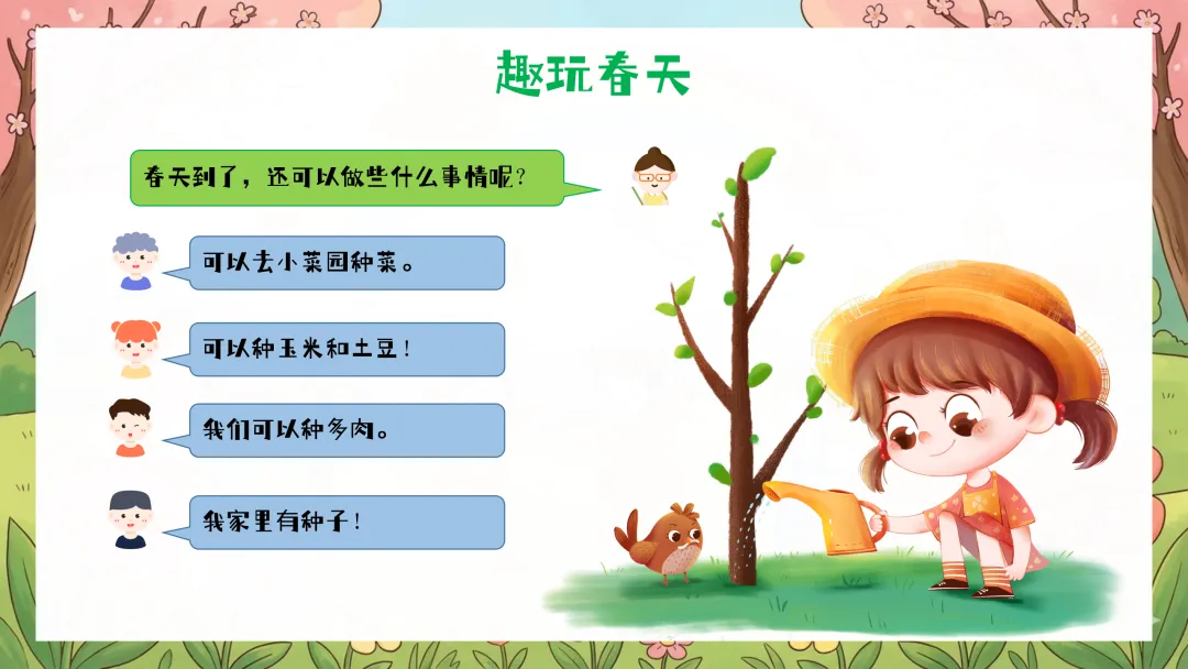 教师小结:“这些都是我们生活中常见的种子,它们有不同的颜色和形状,有的圆圆的,有的长长的。”