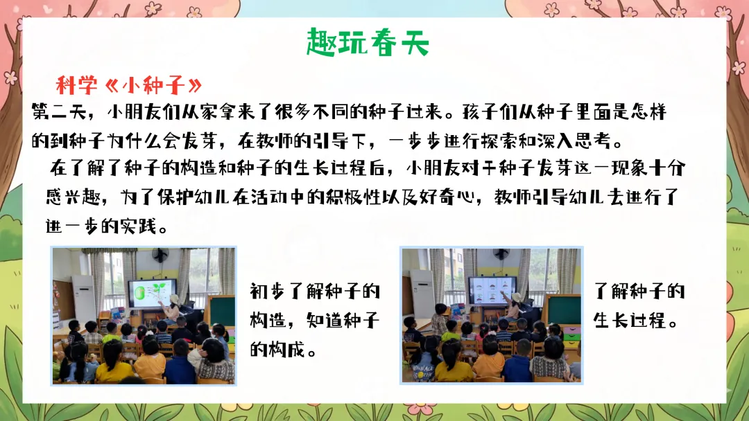 家园共育:鼓励家长和孩子一起收集更多种类的种子(如瓜子、玉米粒、花生等),在家中进行种子贴画创作,体验亲子创作的乐趣。