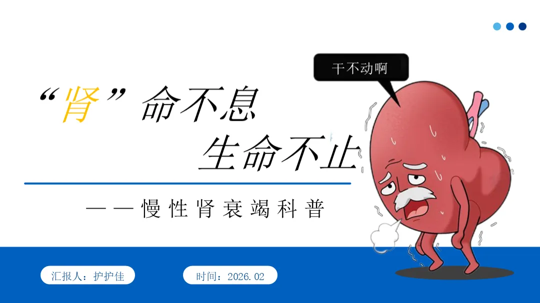 肾脏,是人体最沉默的守护者,它日夜不停,却从不喧哗;生命因它而澄澈,也因它而延续。今天,我想和大家分享的主题是——“肾命不息,生命不止”,让我们一同走进慢性肾衰竭,了解它、重视它、守护它。