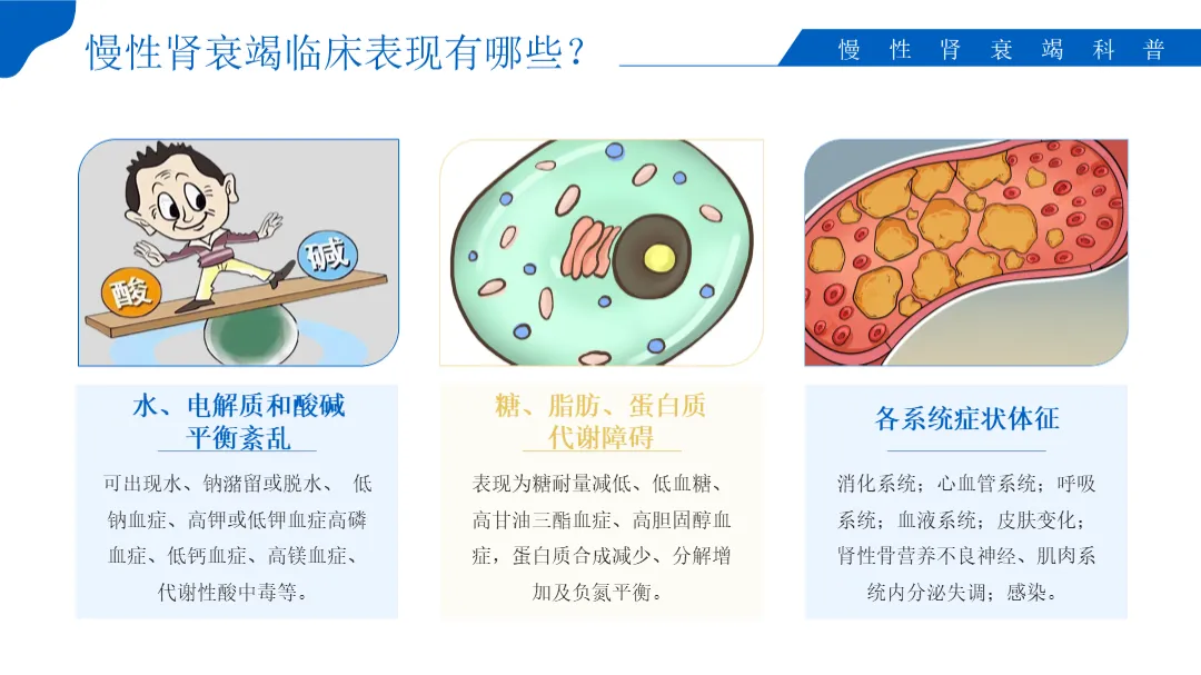 早期可能毫无症状,但随着病情进展,贫血、电解质紊乱、代谢性酸中毒、心血管并发症等会逐一浮现。我们常说“肾病综合征并发症”,其实只是其中一角。肾衰竭影响的是全身——从血液到骨骼,从心脏到神经。