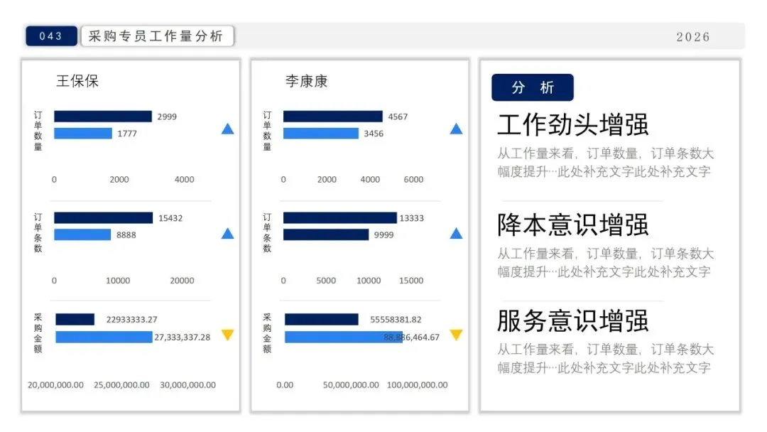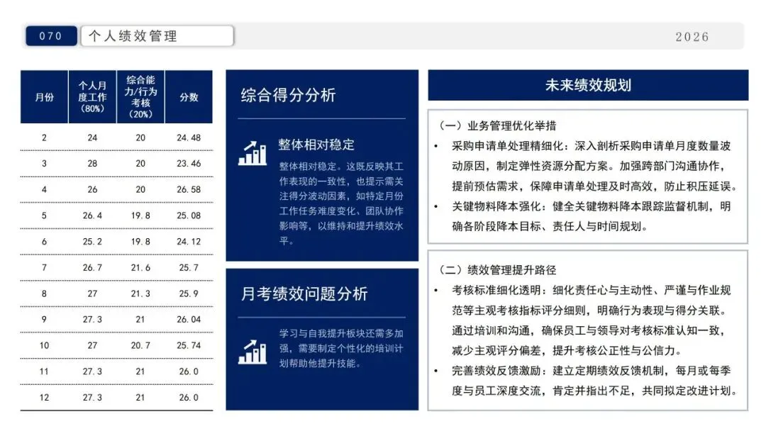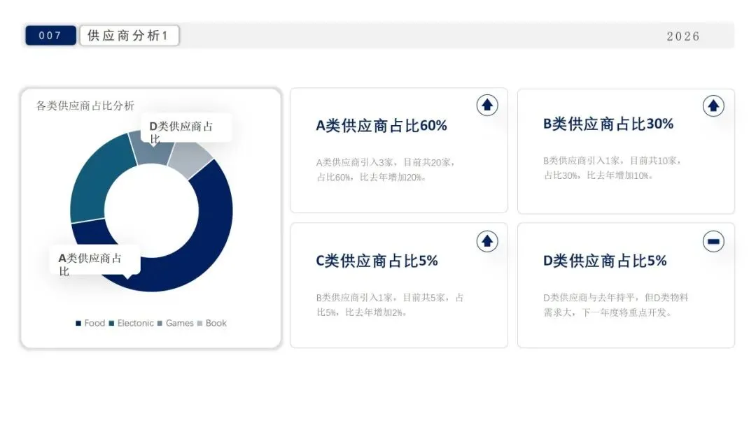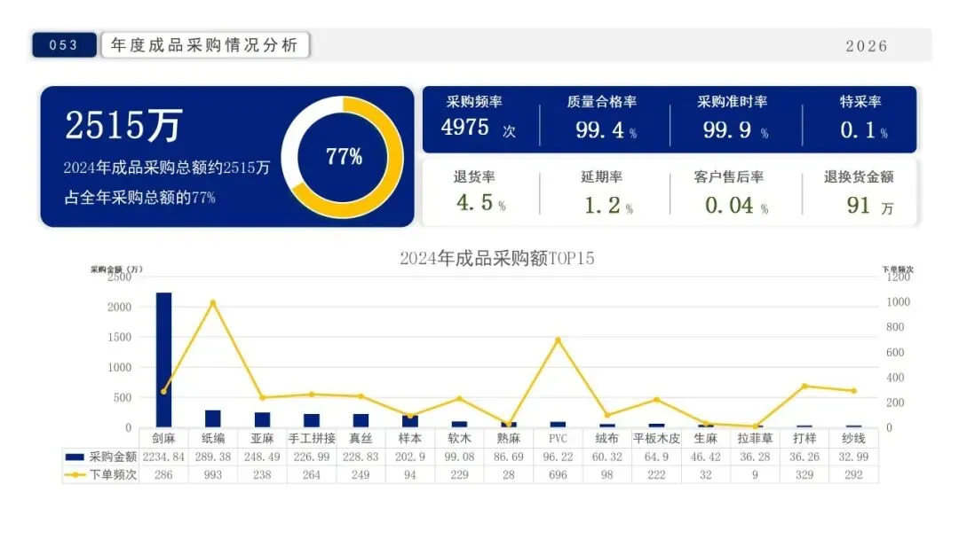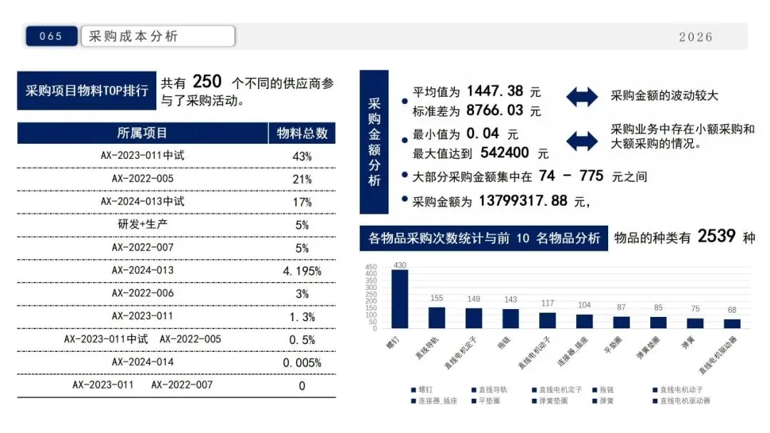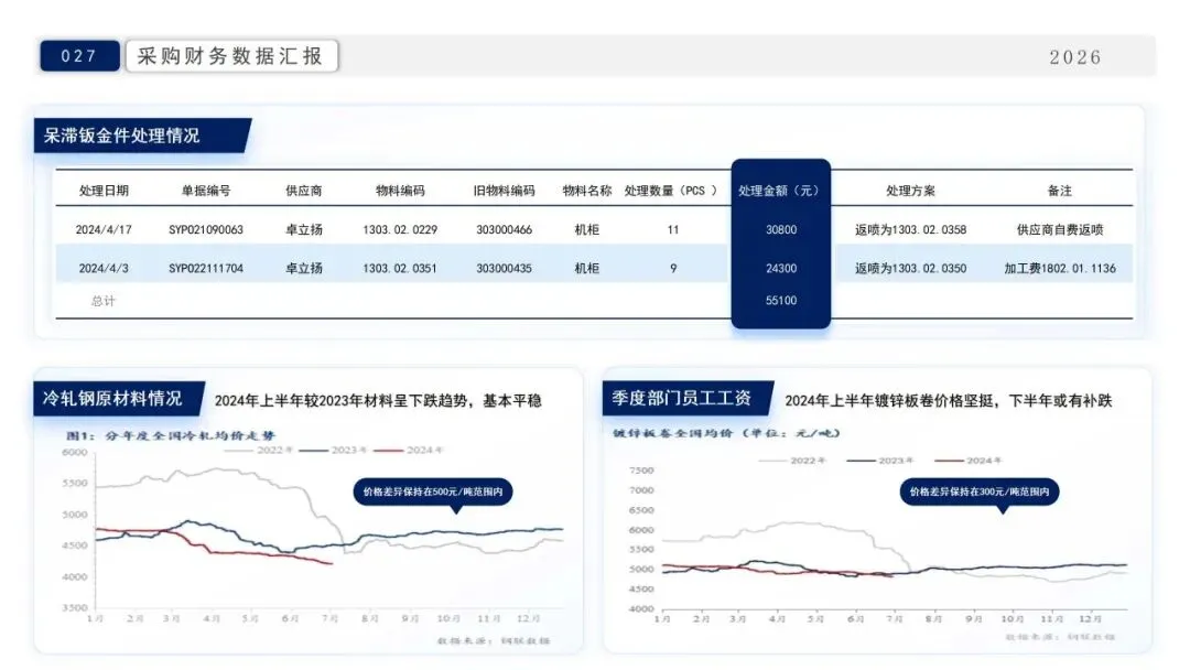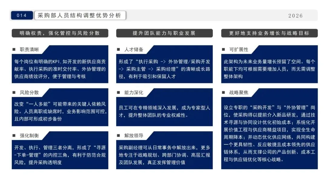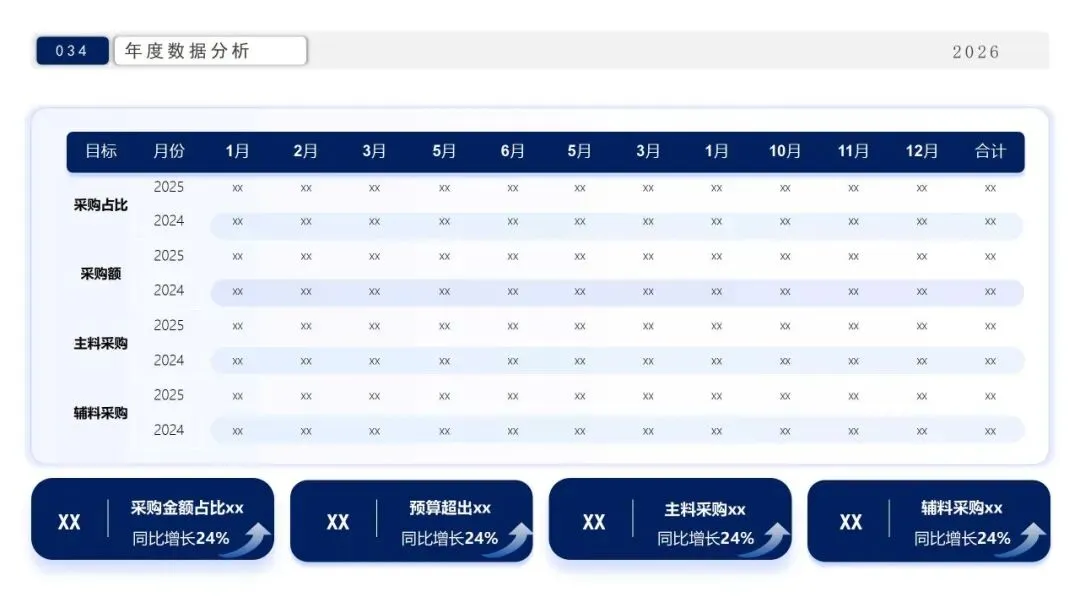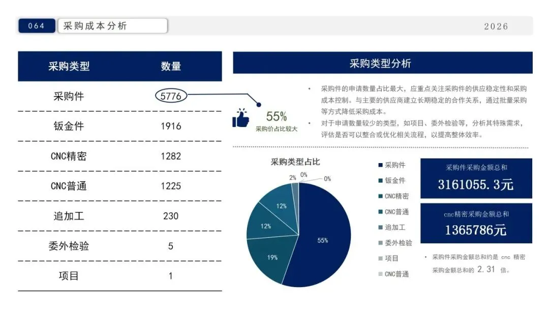 围绕2025年采购工作全面复盘、现存问题分析及2026年战略规划展开,核心聚焦降本增效、供应商优化、流程升级、供应链风控四大方向,覆盖成本管控、供应商管理、组织架构、生产协同等多维度内容,以下为核心要点总结,关键成果数据见下表: