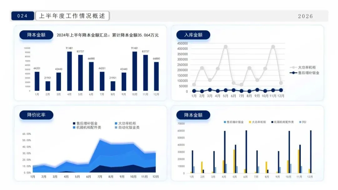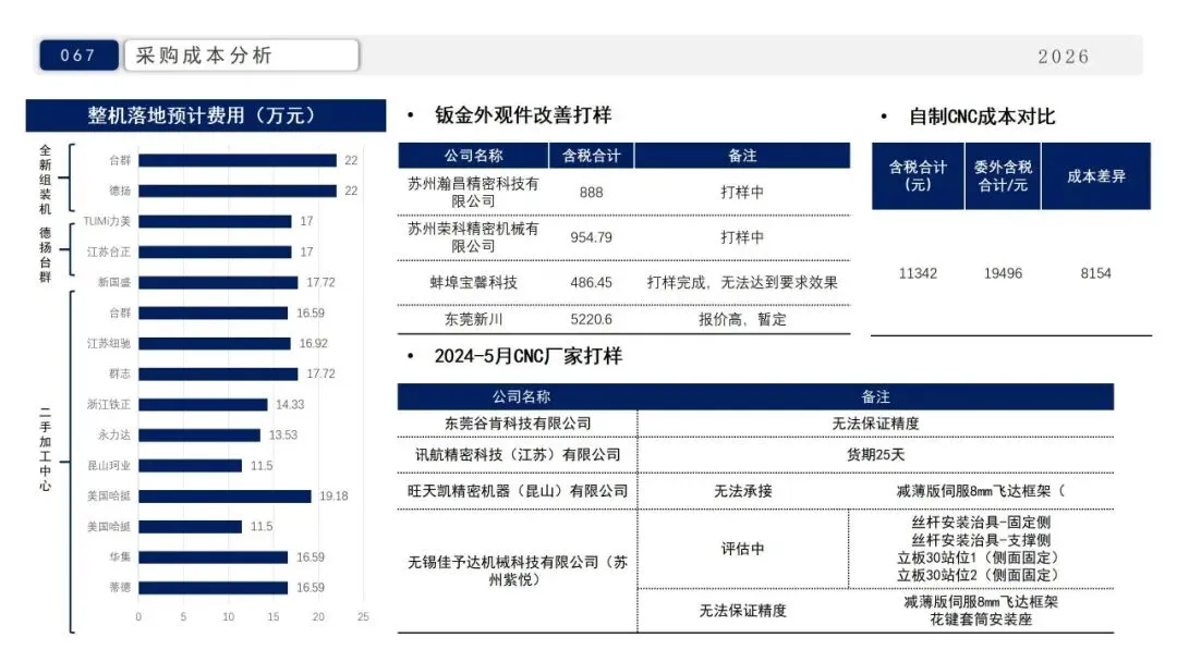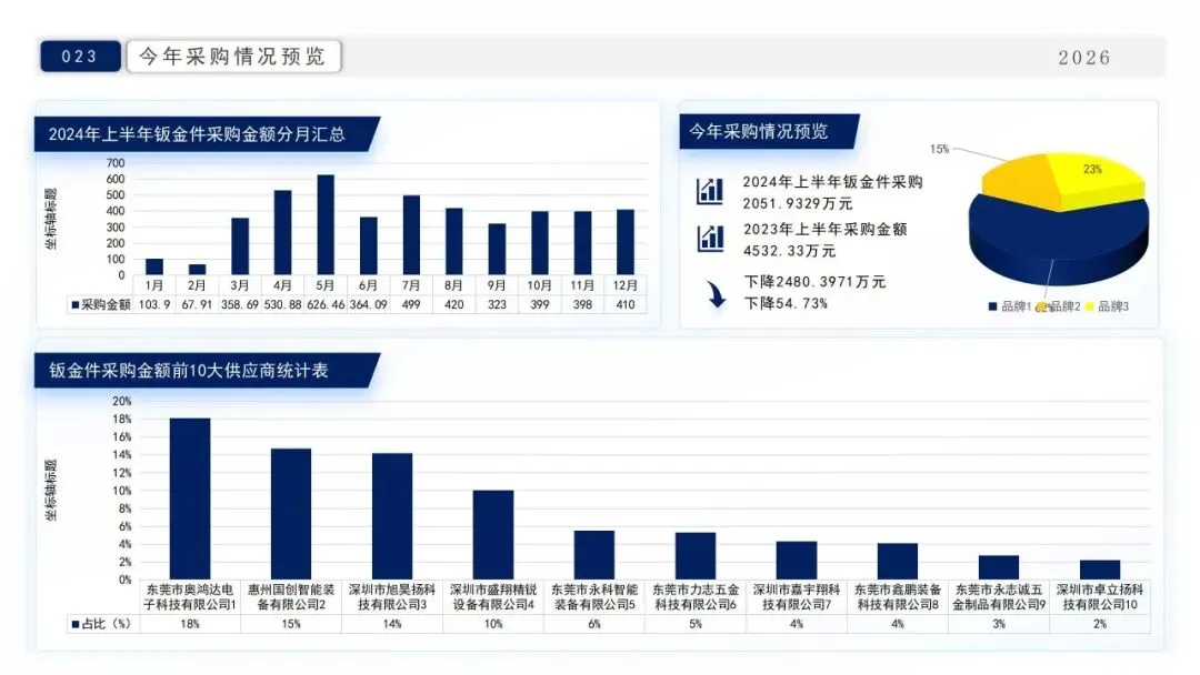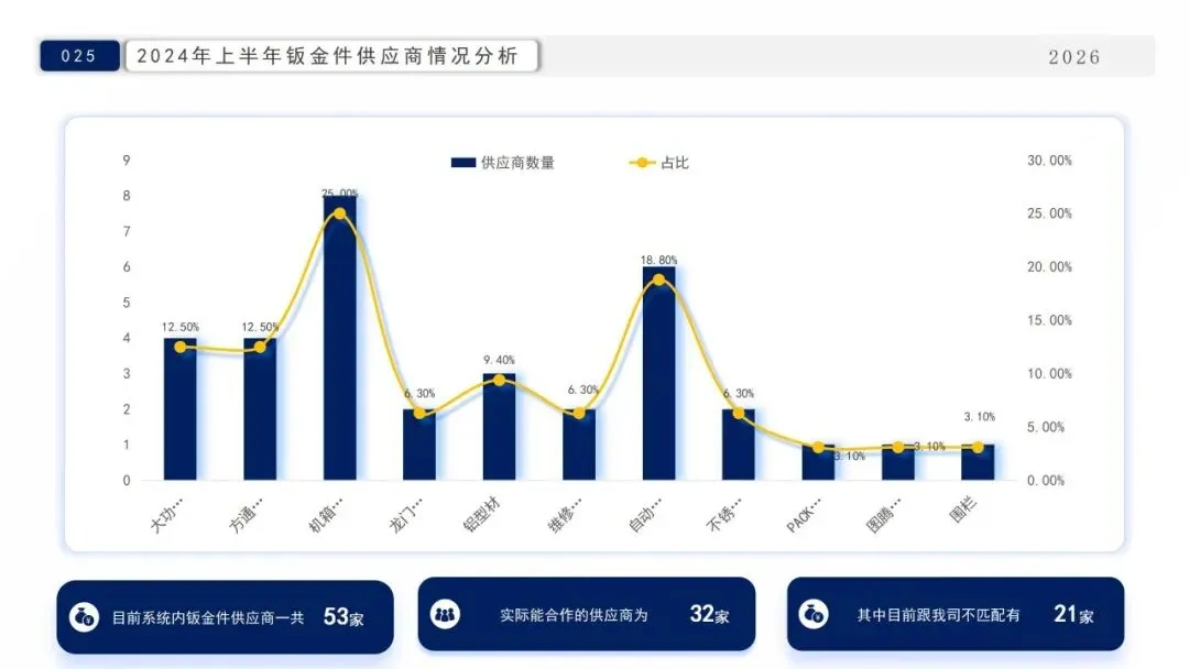 | 主料降本25%(2000万元)、辅料降本50%(1000万元)、耗材降本20%(200万元);钣金件上半年降本54.73% |