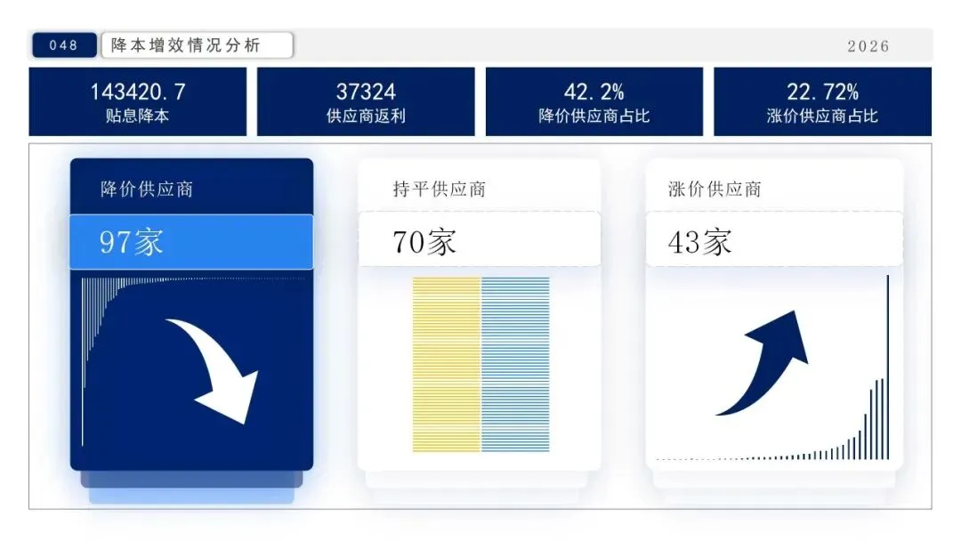 | 全年采购成本共降620万,3/4季度各降300万;年度执行降本计划达成200万,全年消耗成本3200万元 |