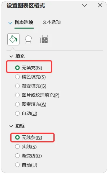 4、设置图表填充和边款为无填充和无线条