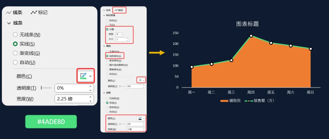 7、单击线条,设置线条颜色和标记颜色