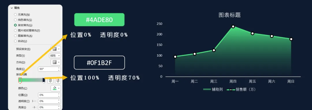 8、设置面积图颜色为渐变色