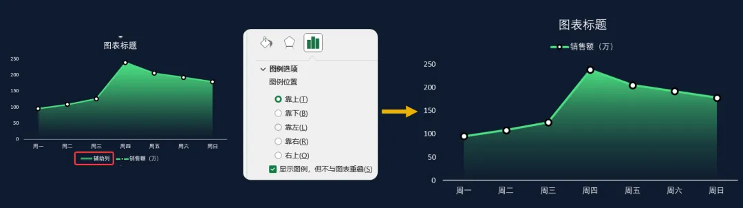 8、删除图例“辅助列”,设置图例靠上