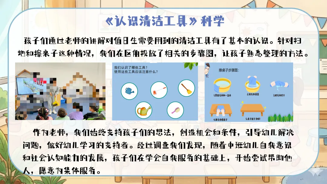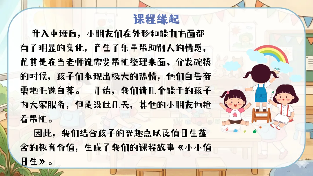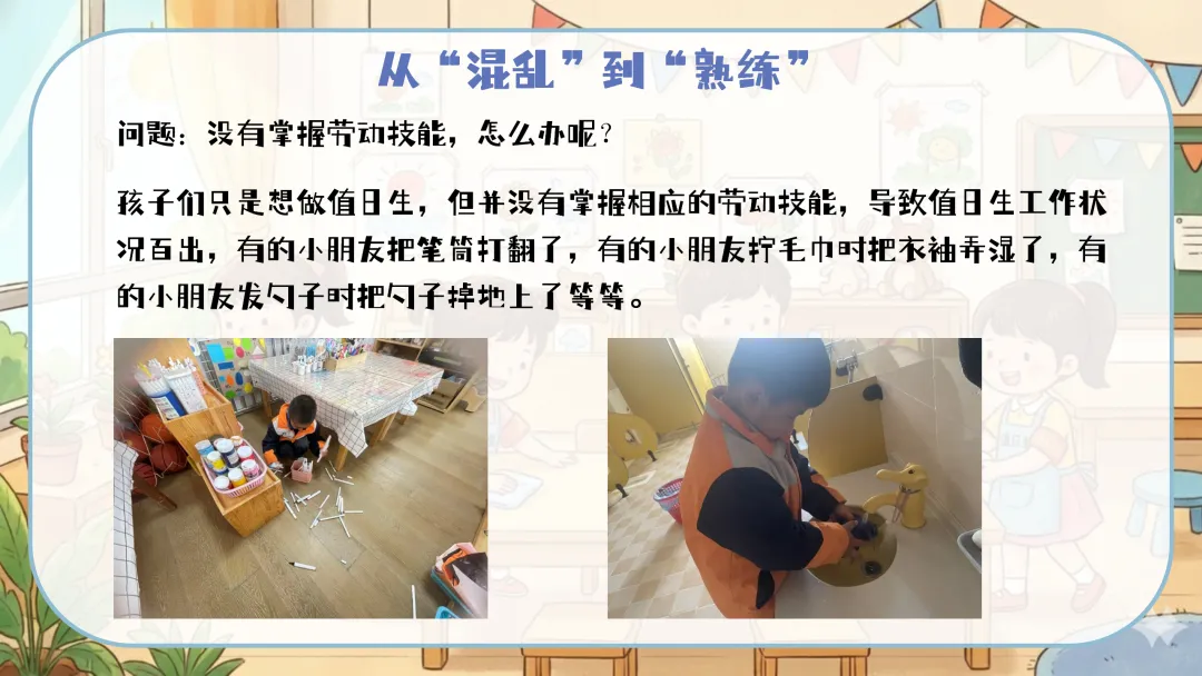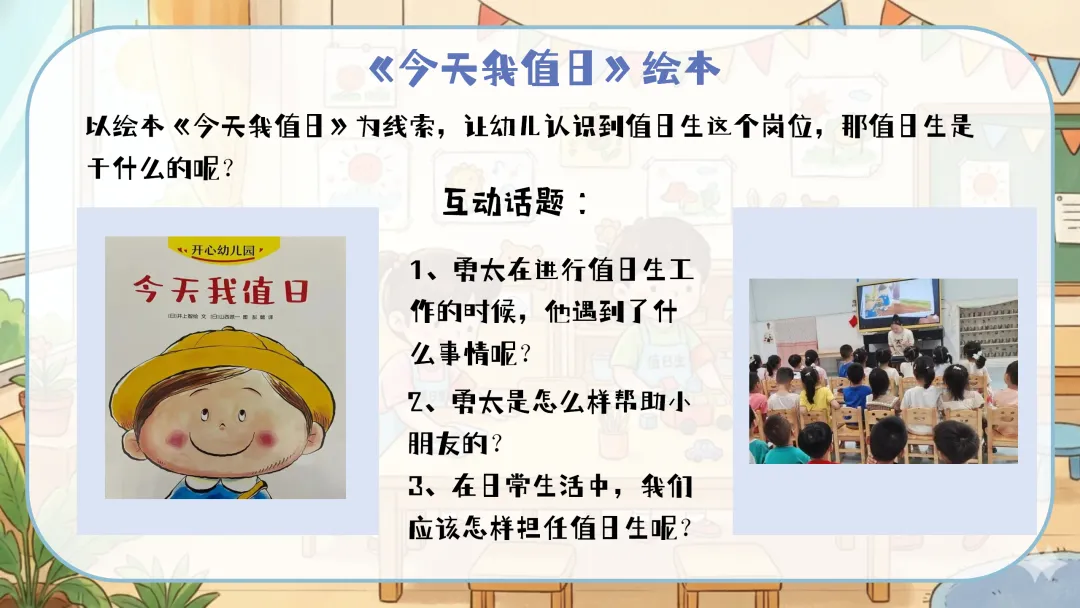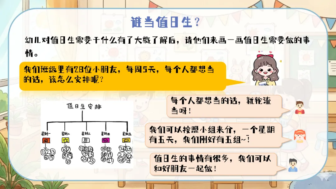 值日生牌改进:定期组织幼儿讨论,根据实际使用情况对值日生牌进行改进,如增加更明确的工作图示、使用更耐用的材料等。