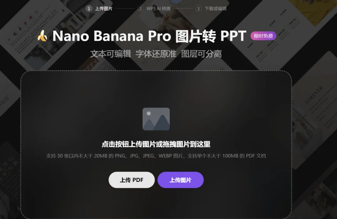 操作步骤:直接上传 PDF 或图片,点击转换即可。