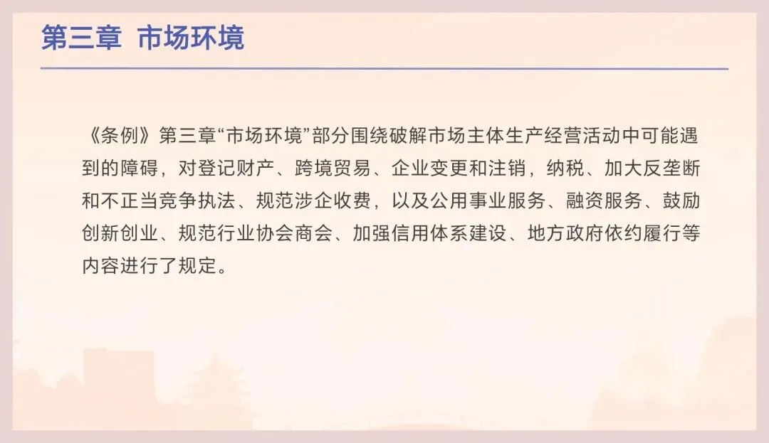 在深入条文之前,我们必须首先理解《条例》为何而生、因何而立。这有助于我们把握其精神内核,而非仅仅拘泥于文字。《条例》所称营商环境,是指企业等市场主体在市场经济活动中所涉及的体制机制性因素和条件。