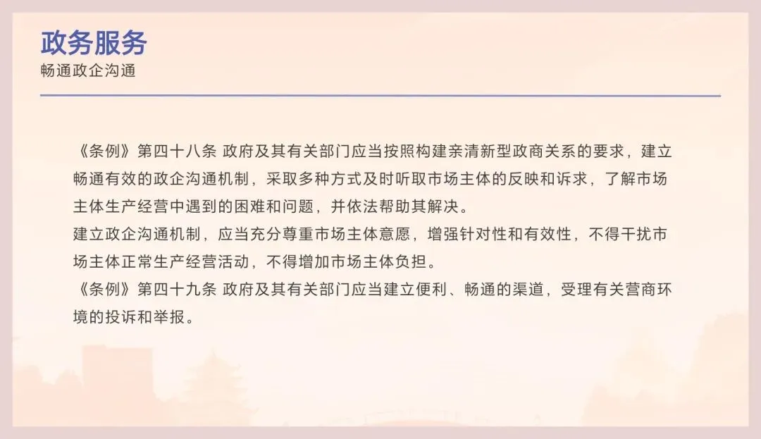 《条例》开宗明义,确立了优化营商环境工作必须坚持的三大基本原则:市场化、法治化、国际化。这三大原则相互关联、有机统一: