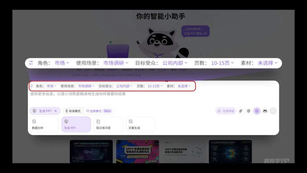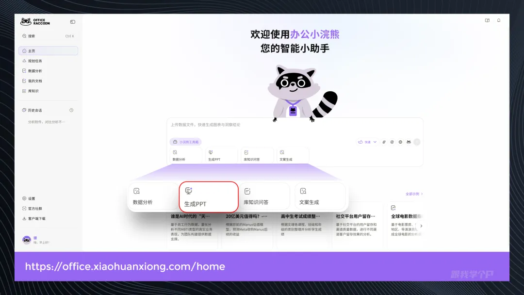 打开主页,在中间有个【生成PPT】的选项: