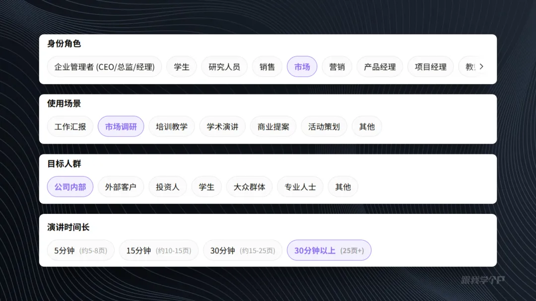 当然,如果说你不想用内置模板的风格,小浣熊还有一个上传参考模板的功能,接着往下看。▎上传模板,可以自定义风格?