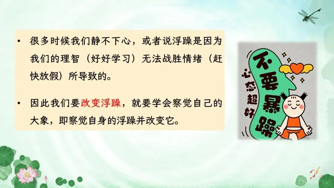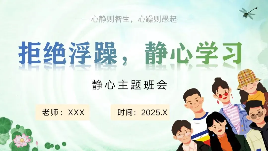 静心学习主题班会ppt:拒绝浮躁,静心学习。