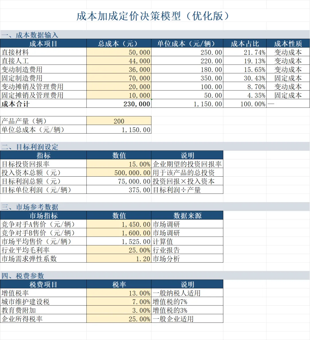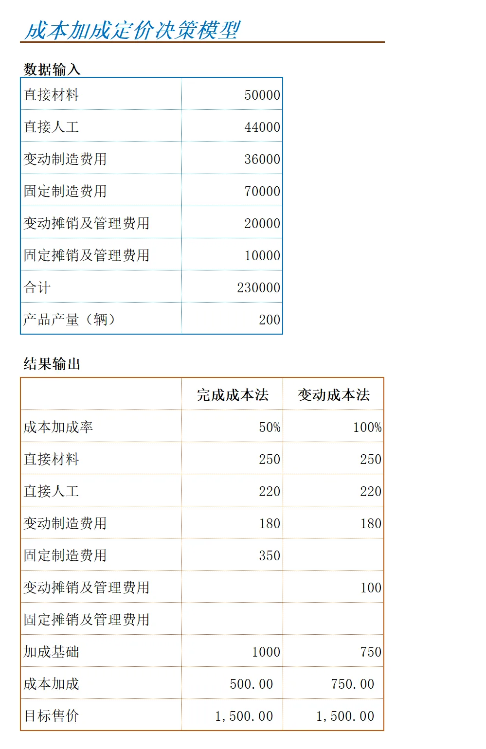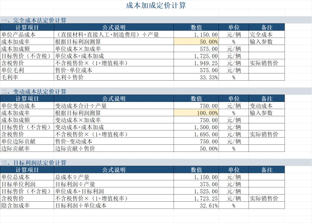 简易模型简易模型:基于成本直接计算定价,快速得到基础定价方案。如下列图: