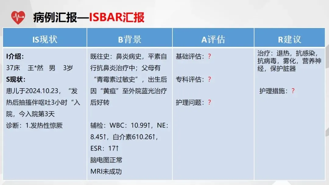 【PPT】基于ISBAR沟通模式的热性惊厥患儿护理业务查房