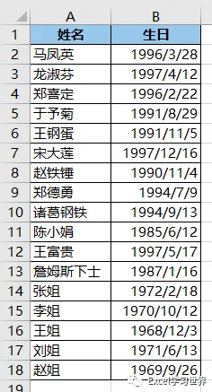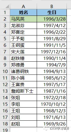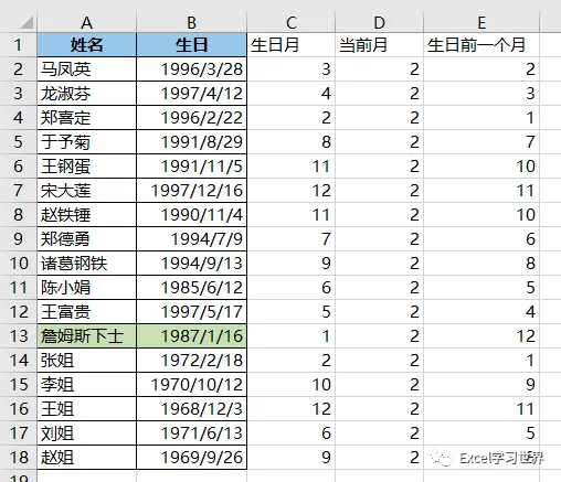 今天教一个被提问很久的技巧:如何在生日的前一个月让表格自动提醒?