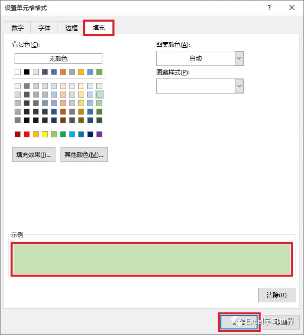 6. 选择“填充”选项卡 --> 选择所需的颜色 --> 点击“确定”
