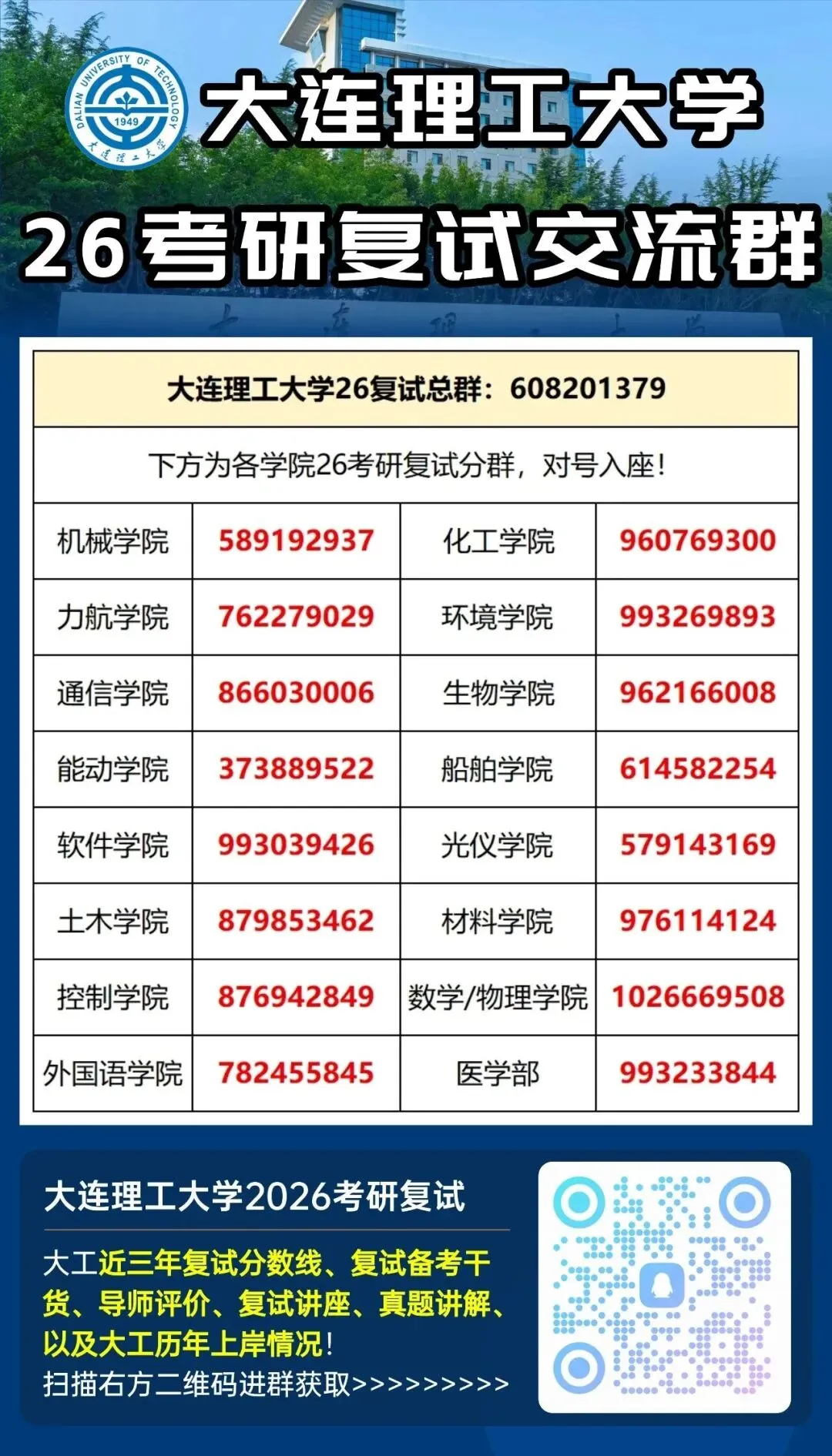 大连理工大学26考研复试群已建好,小伙伴们记得加入组织,复试阶段信息非常密集,一定不要错过重要通知!