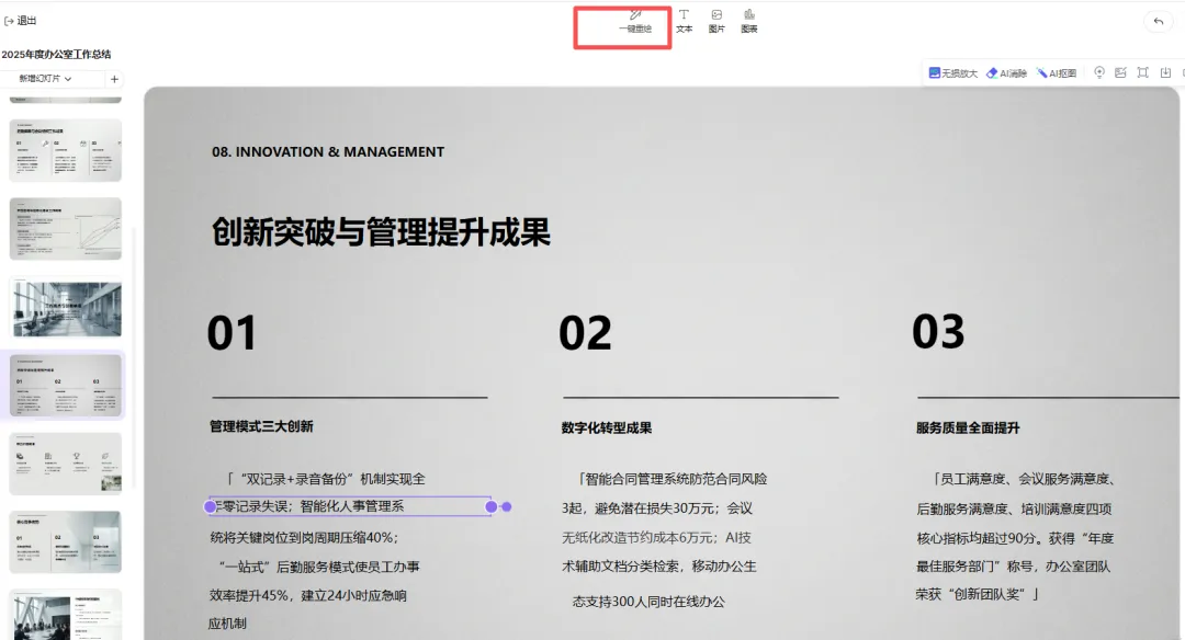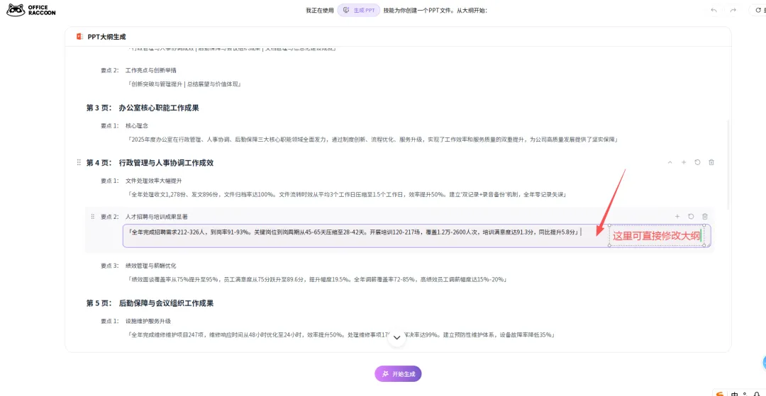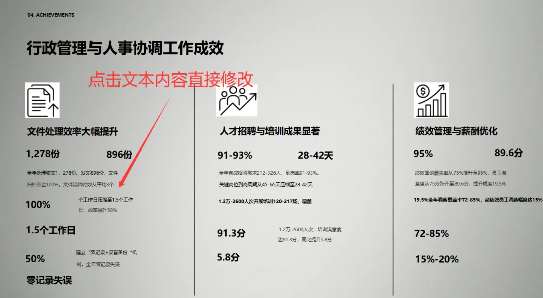生成后,如果要修改内容,我们可以直接在单页的 PPT 进行修改。