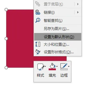 右键一个已调整好参数的矩形,设置为「默认形状」,那么之后每次插入新的形状,都是红色的。