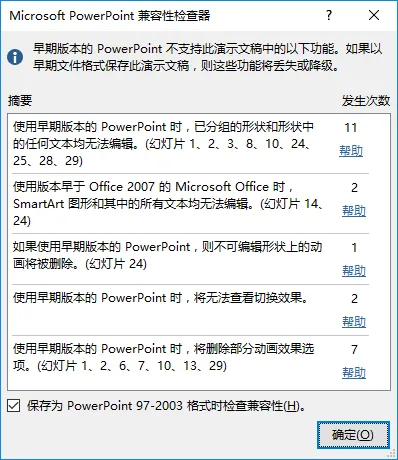 检查是否含有早期版本的 PowerPoint 不支持的功能。