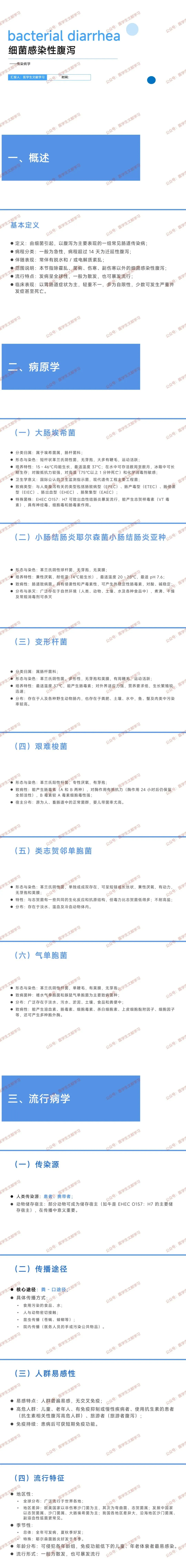 核心定义:细菌感染引发的腹泻为主的肠道传染病,急性多见,病程>14 天为迁延性腹泻。
