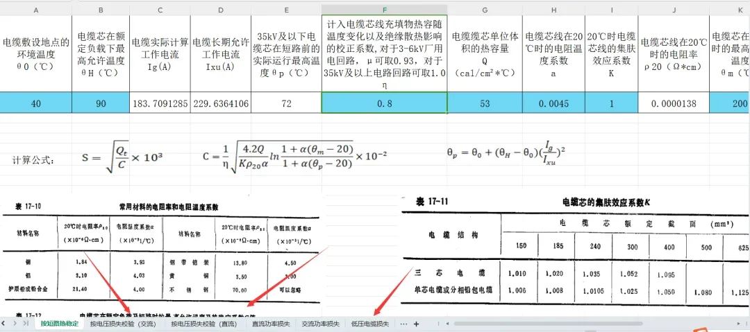 >电缆计算选型校验Excel计算工具(很实用).xlsx