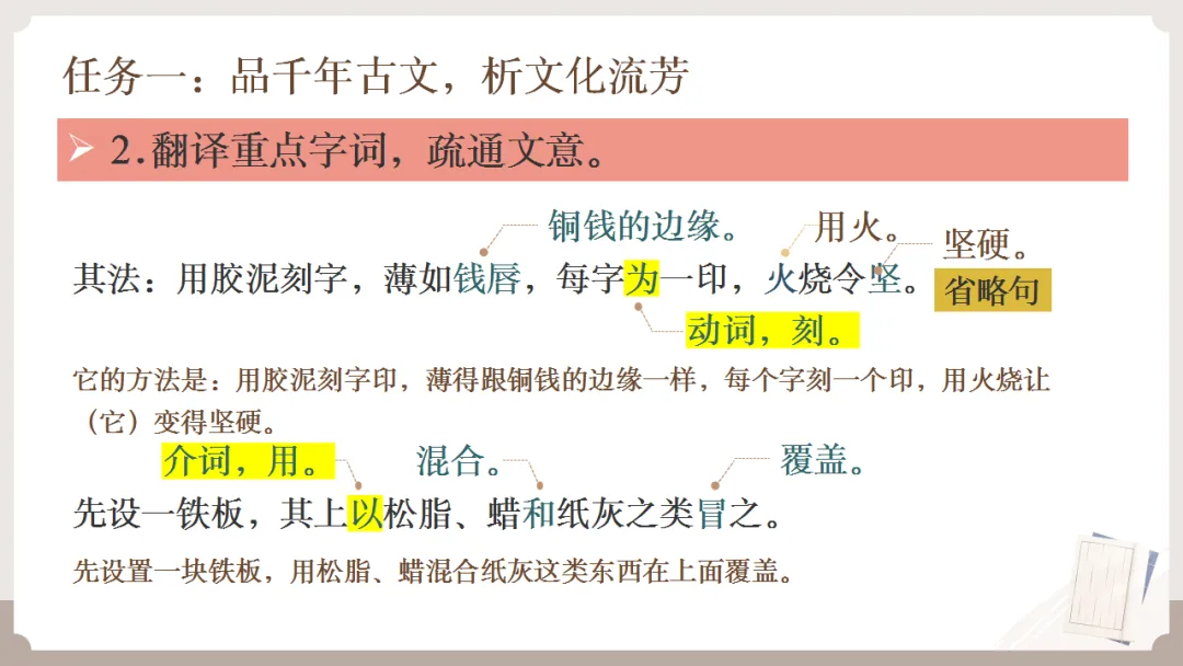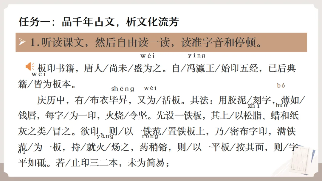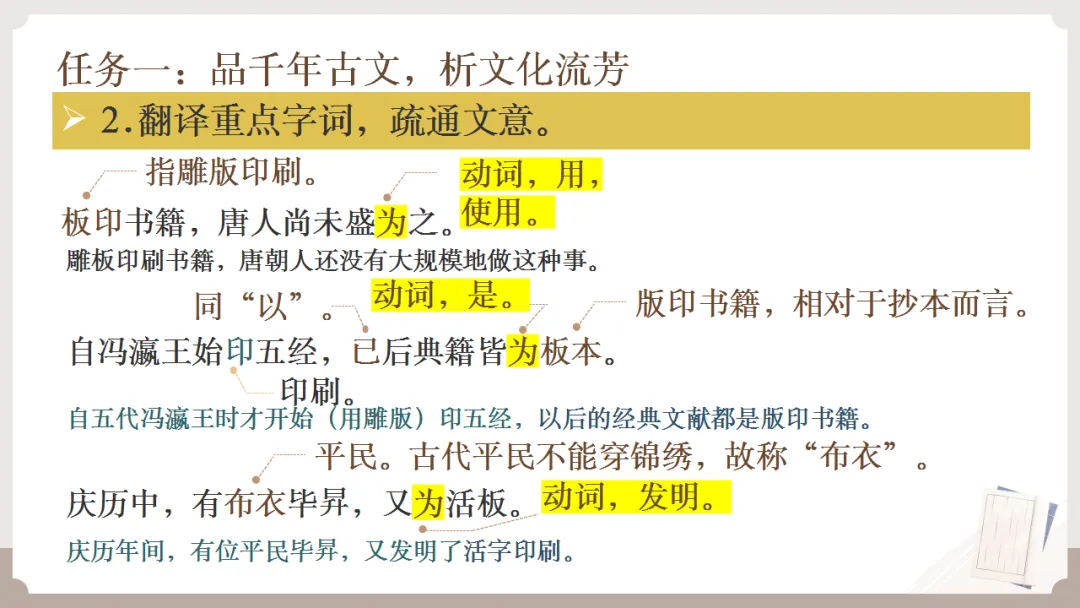 布置要求:根据参观者年龄层次,学习能力的不同,我们需要在《活版》原文关键处做部分批注,方便大家读懂原文,感知活板。