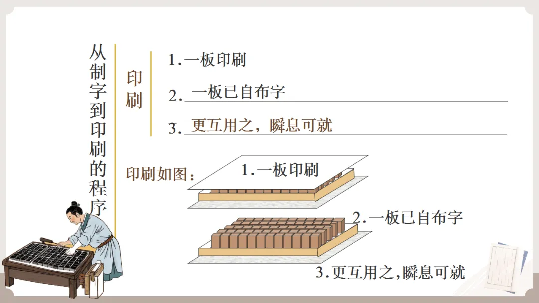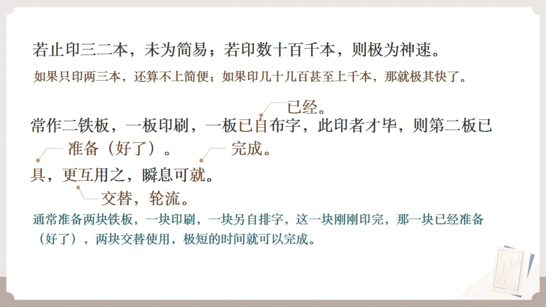 印刷活:“一板......一板......”“更互用之”,交替使用效率高。