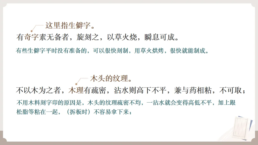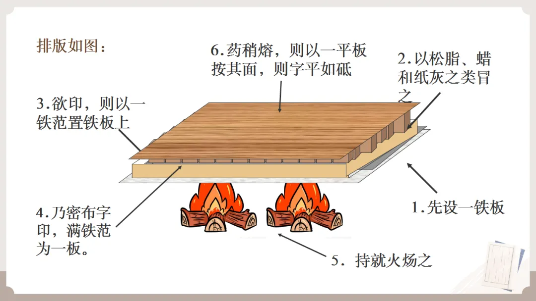 拆版活:“用讫再火令药镕,以手拂之,其印自落,殊不沾污”,可灵活拆板,重复使用。
