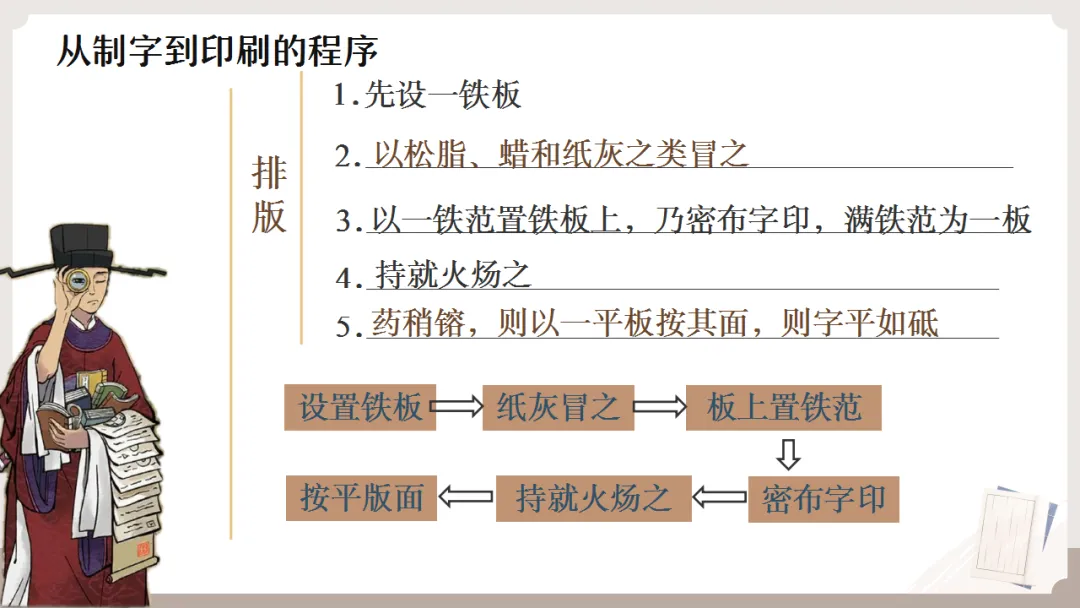 [材料一]毕昇出身平民,长期在杭州书籍铺做雕版刻工,专事手工印刷。在雕版印刷实践中,鉴于雕版印刷的艰难,为减少成本、提高排版效率,其在总结前人经验的基础上,发明了活字印刷术。