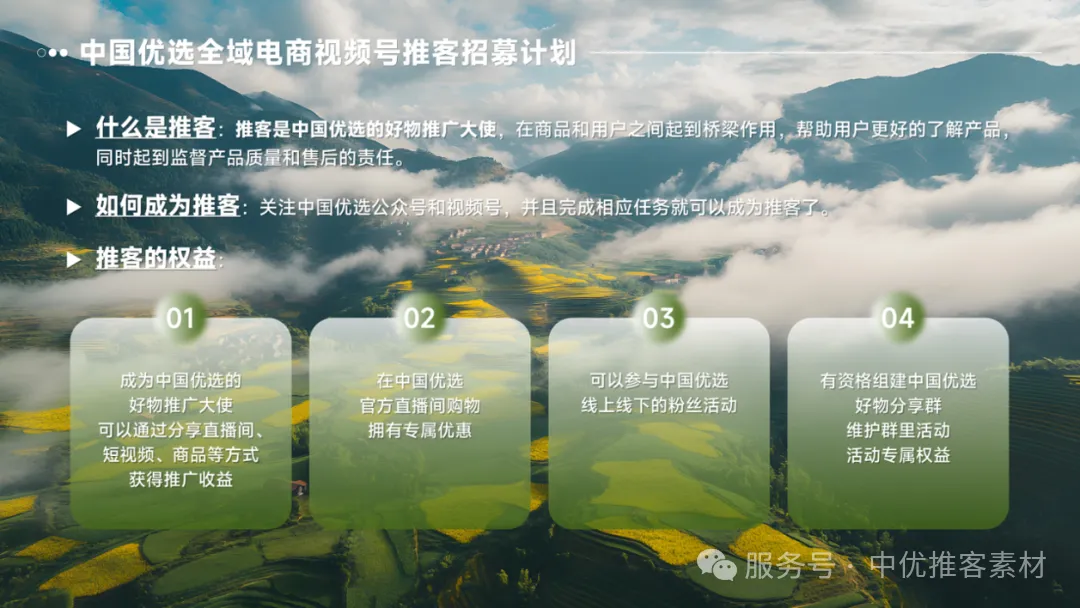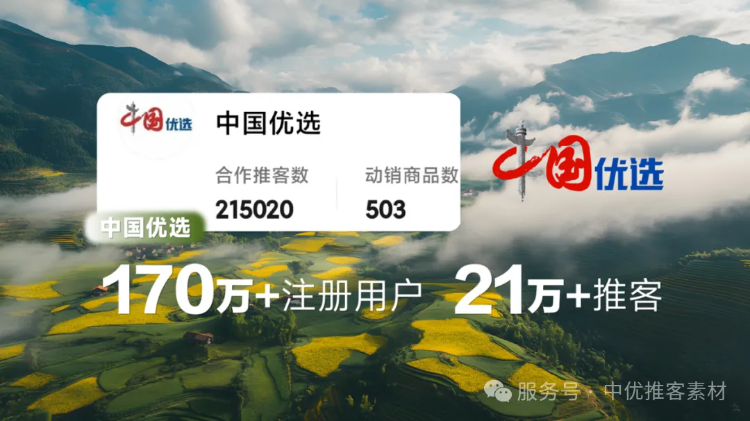 讲好中国故事,卖好中国产品,孵化中国IP,赋能中国企业,中国优选让每一个推客都可以享受到直播电商的时代红利。